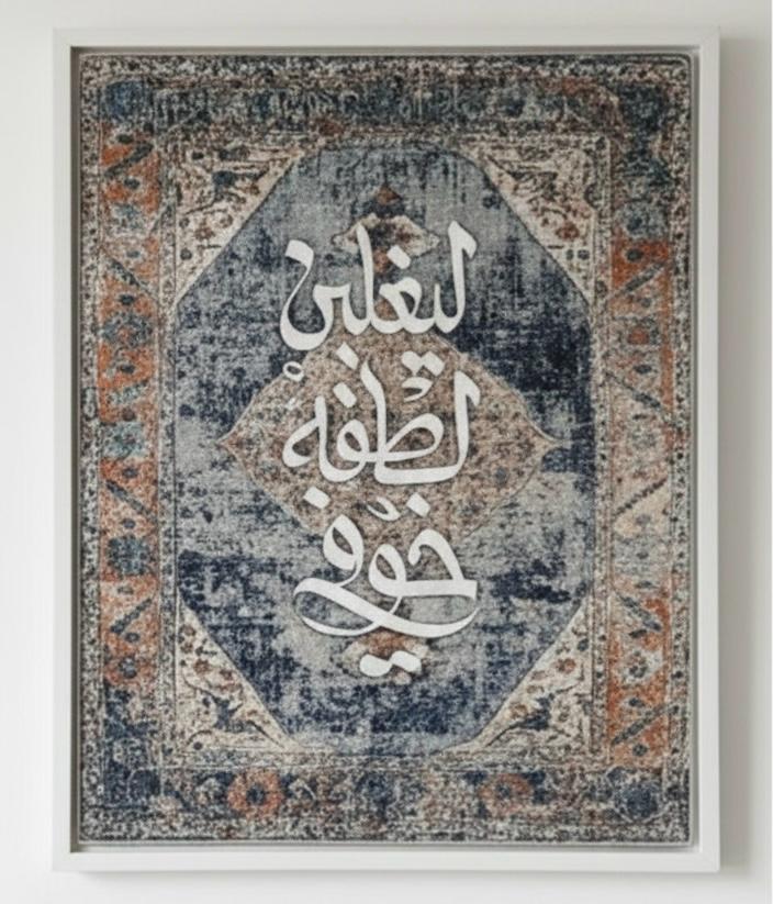 آيان – لوحة فنية بإطار خشبي بنقشة سجاد وعبارة عربية