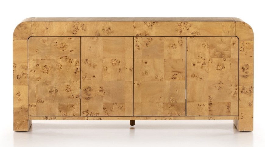 وحدة تلفاز بيرلاب خشبية منحنية مع وحدات تخزين