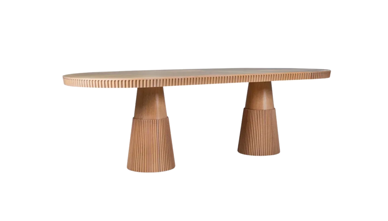 - سطح بيضاوي أنيق يمنح انسيابية أكبر مقارنة بتصاميم طاولات الطعام التقليدية.