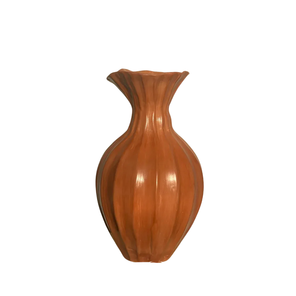 فازة فخارية مصنوعة بعناية حرفية تضيف دفئًا وأناقة لأي مساحة ديكور منزلي. تتميز بخطوطها العضوية ولونها الترابي الذي يمنح لمسة فنية راقية للطاولات والأرفف.