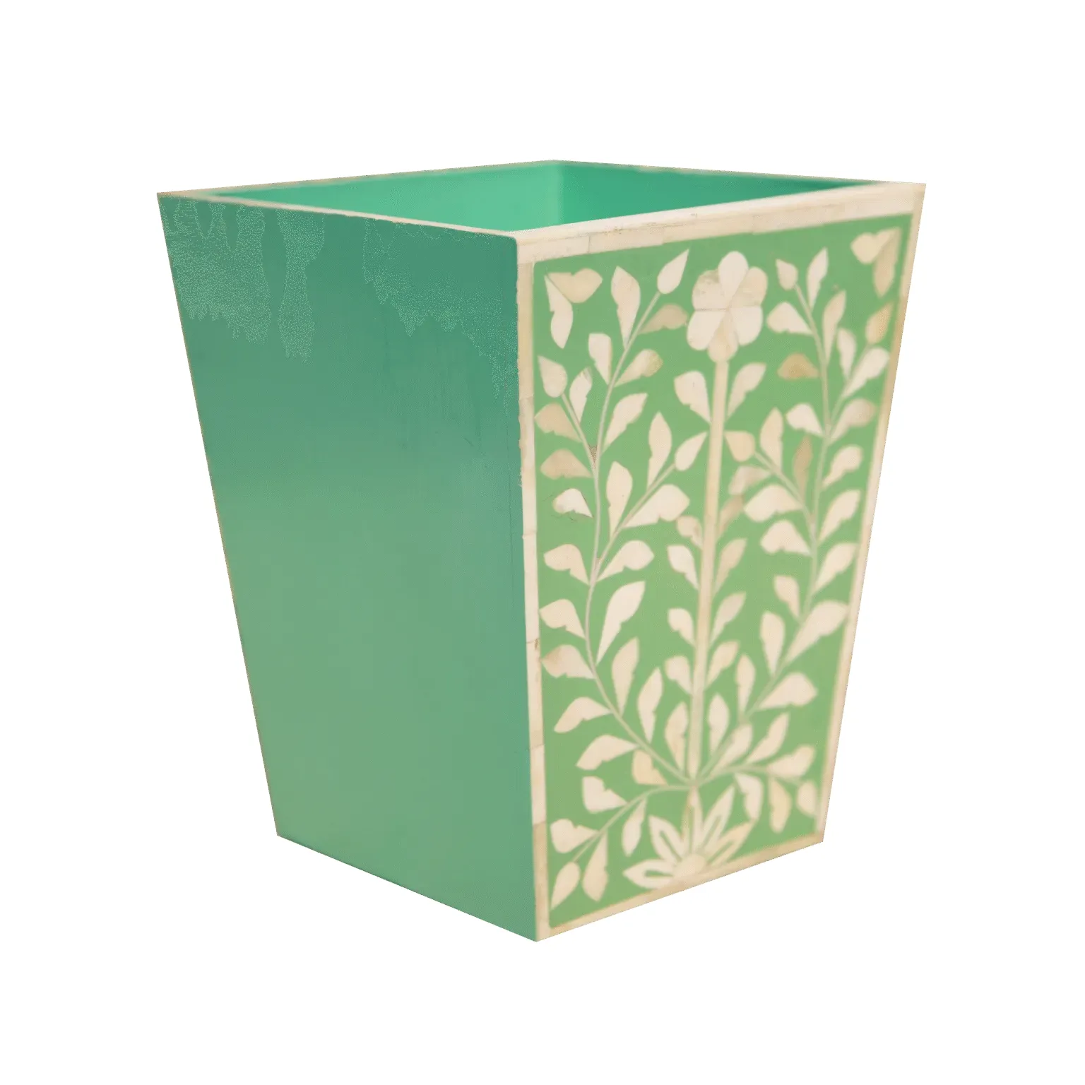 سلة مغربية خضراء تتميز بتصميم فني يجمع ببراعة بين الحرفية التقليدية والخامات العصرية. تأتي السلة بلون أخضر جذاب ومزينة بنقوش مطعمة بالعظم على الطراز المغربي الأصيل، مما يجعلها قطعة ديكورية راقية تناسب المنازل والمكاتب الفاخرة والمتاجر المتخصصة.
