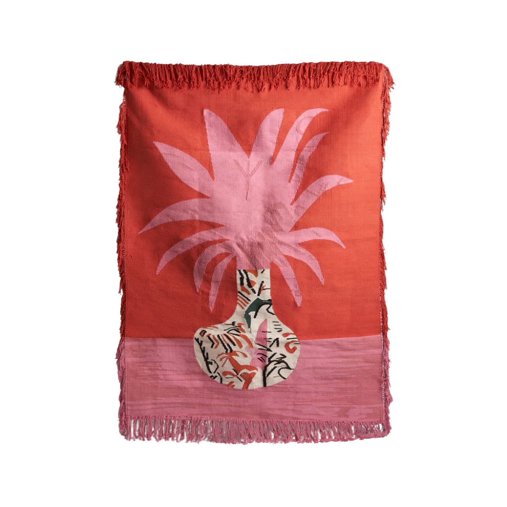 أضف لمسة فنية دافئة وحسًا يدويًا لجدرانك مع تعليقة الحائط أيرس الكليم. تتميز بدرجات ناعمة من البينك، بالإضافة إلى تفاصيل نسيجية متناظرة وأطراف مزينة بشرّابات تضيف عمقًا بصريًا وأناقة فريدة.