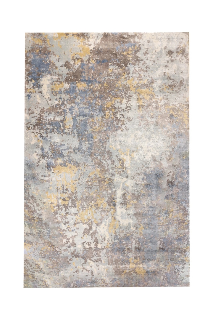 سجادة فاخرة مصنوعة يدويًا في الهند، تجمع بين نعومة الصوف الطبيعي ولمعان الفيسكوز، مما يمنحها إطلالة أنيقة. تتميز بتصميم تجريدي بألوان هادئة من الفضي والأزرق والذهبي، مما يضيف عمقًا بصريًا وشعورًا بالهدوء للمساحة. ملمسها ناعم ومريح، لكنها قوية بما يكفي للاستخدام اليومي، مما يجعلها مثالية لغرف المعيشة أو النوم أو أي مساحة تحتاج إلى لمسة راقية ودافئة.