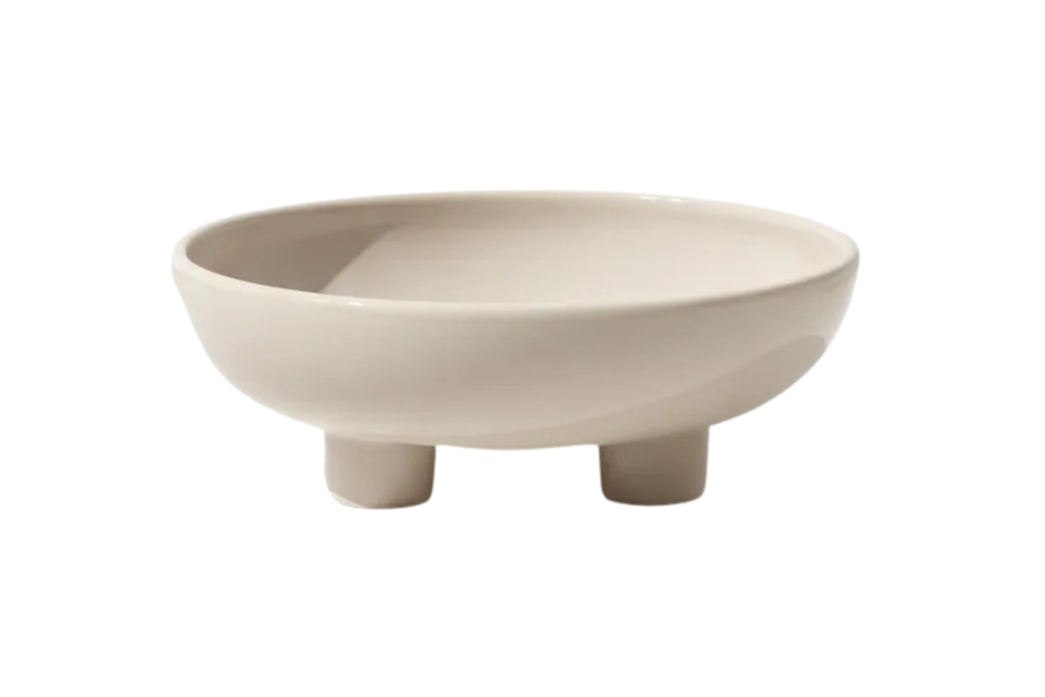 وعاء سيراميك كبير بقاعدة – بيج لامع