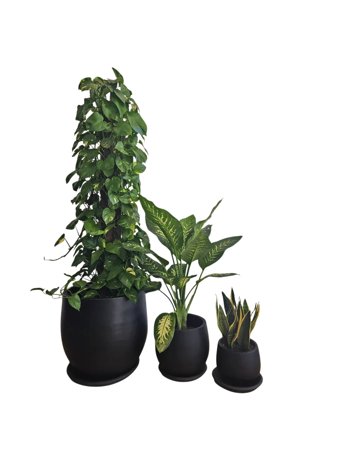 ثلاثية نباتات منخفضة الإضاءة في أواني