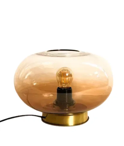 مصباح طاولة يعكس هدوء ضوء القمر بتصميم عصري أنيق. يتميز بهيكل زجاجي دائري من البايركس مع قاعدة من النحاس المصقول، ليجمع بين الحرفية المصرية والطابع الحديث في قطعة واحدة راقية.