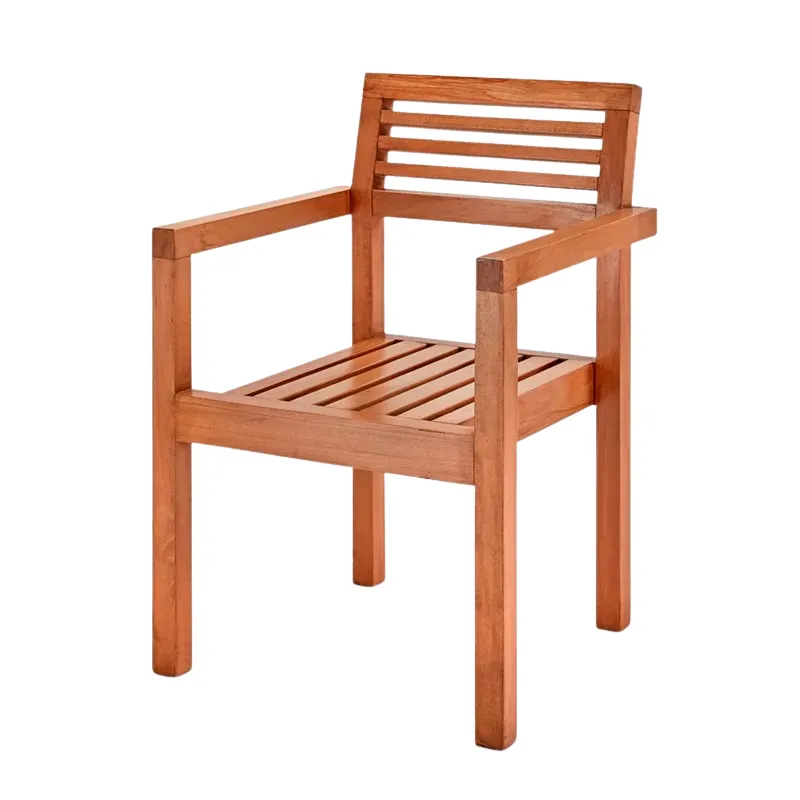 كرسي بذراعين مصنوع من خشب الزان الصلب والفاخر، يتميز بتصميم شرائح خشبية مفتوحة يجمع بين القوة الهيكلية والجمالية العصرية الخفيفة. صُمم الكرسي بإطار متين مع وسادة مقعد مريحة لضمان الراحة التامة، مما يجعله خياراً مثالياً للشرفات المشمسة، الحدائق، أو غرف الطعام الداخلية الراقية. بفضل خطوطه الهندسية الأنيقة وتشطيبه المقاوم للعوامل الجوية، يمثل هذا الكرسي قطعة أساسية تجمع بين الفخامة العملية والتصميم المستدام.