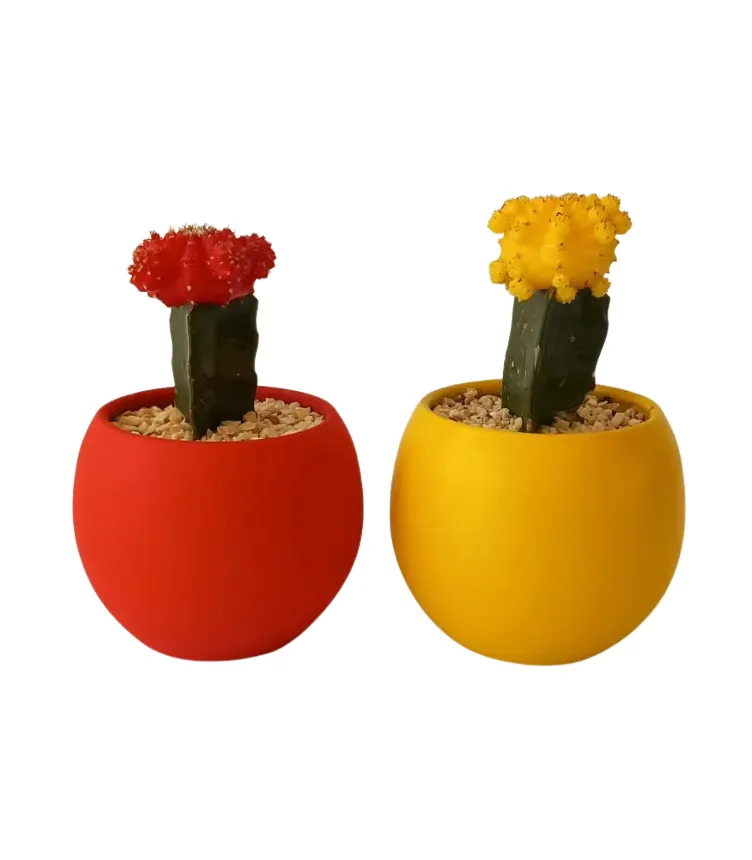 ثنائي الصبار القمري الصغير هو زوج ملون من الصبار المدمج يضيف لمسة مرحة وحيوية لأي مساحة. في الداخل، ينمو بشكل ممتاز تحت أشعة الشمس المباشرة ويُفضل وضعه قرب نافذة مشمسة لبضع ساعات يوميًا مع تجنب الأماكن المظللة. أما في الخارج، فهو يفضل الظل الساطع أو الضوء المفلتر. يتميز بسهولة العناية وجاذبية لافتة، مما يجعله مثاليًا للمكاتب أو حواف النوافذ أو الزوايا الصغيرة.