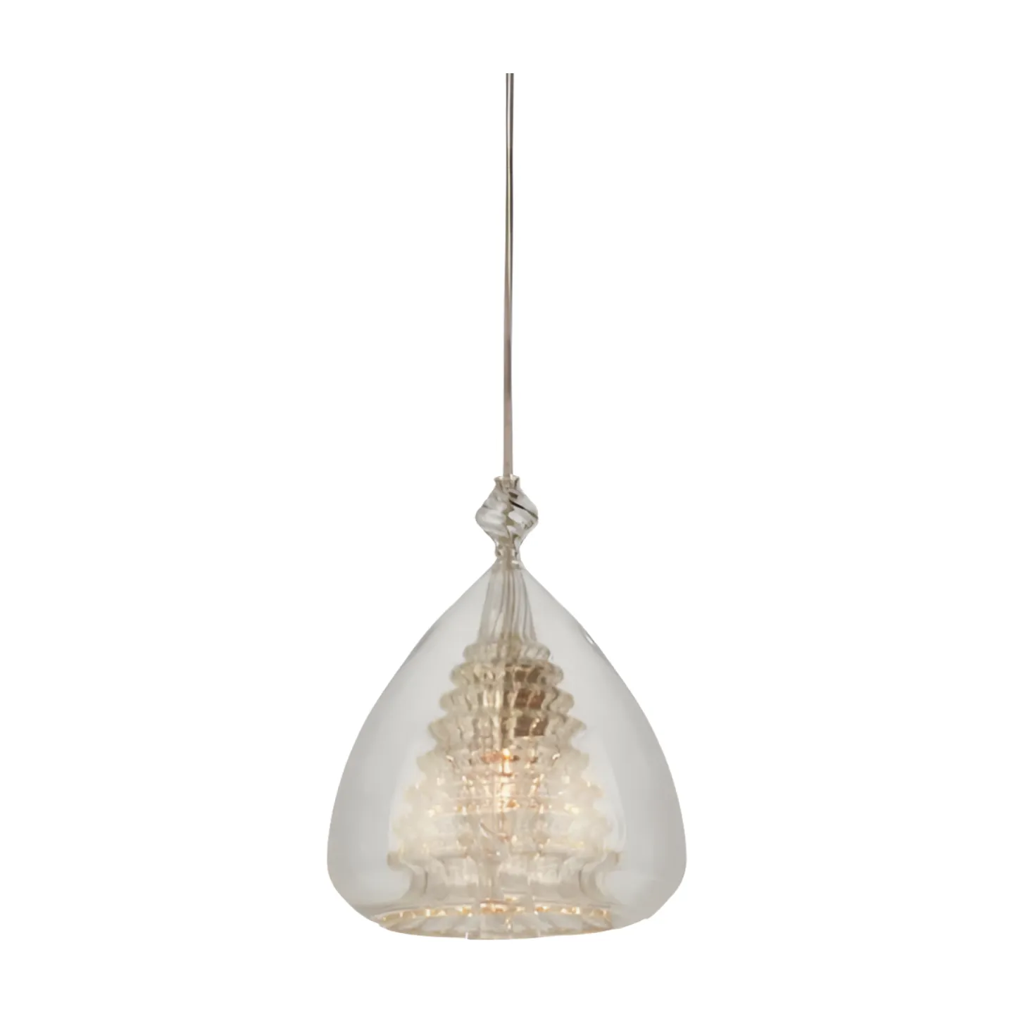 نجفة مصنوعة يدويا من زجاج البورسليكات، يتم نفخها وتشكيلها بعناية لتأخذ تصميماً متقناً وأنيقاً. تتدلى من سلك متين مما يجعلها سهلة التركيب في أي غرفة. تعد قطعة مميزة تضفي لمسة من الرقي والفخامة، مما يجعلها إضافة جميلة لأي منزل.