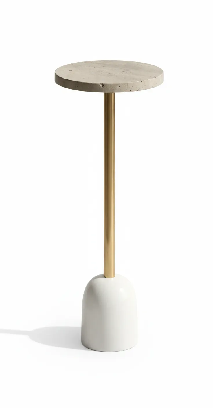 طاولة جانبية بتيت - سطح وقاعدة رخام - رجل معدنية - دائرية