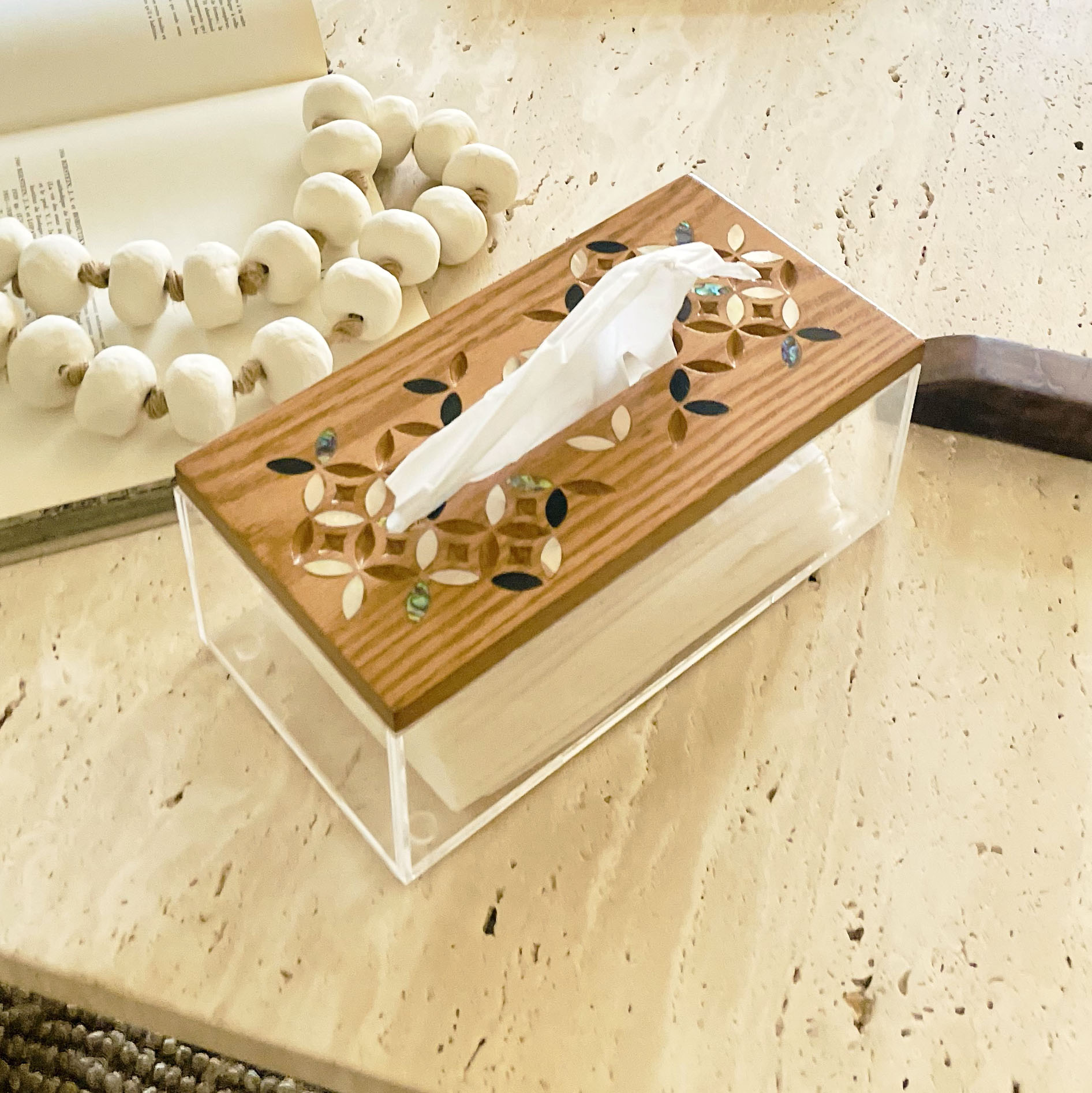 علبه مناديل كوادرا - خشب أرو مطعم بالصدف
