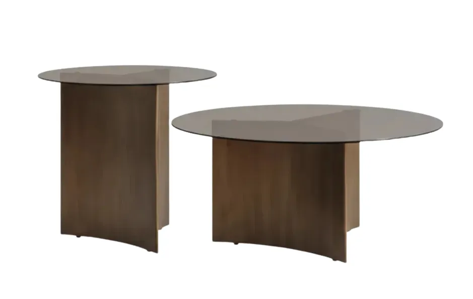 تتكون هذه المجموعة الأنيقة من طاولتين جانبيتين بتصميم عصري يجمع بين سطح زجاجي أنيق وقاعدة مطلية باللاكيه بلمسة ناعمة. يمكن تنسيقهما معًا أو استخدام كل طاولة على حدة لإضفاء لمسة راقية على المساحة.