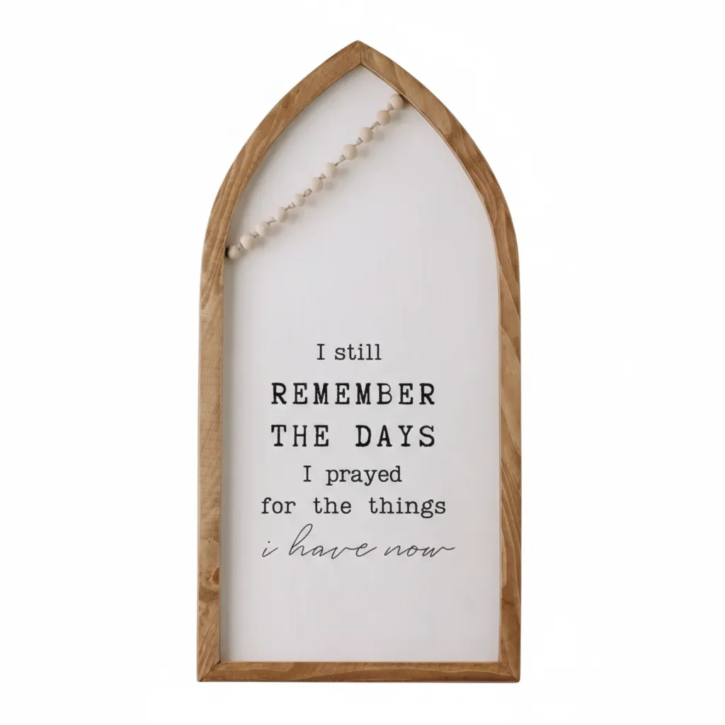 أضف لمسة من الدفء والامتنان إلى منزلك مع ديكور "تذكر" الخشبي البوهيمي المصمم بعناية. يتميز هذا الديكور بالاقتباس المؤثر: "ما زلت أتذكر الأيام التي دعوت فيها للحصول على ما أملك الآن"، ليكون تذكرة بنِعَم الماضي واحتفالًا بالإنجازات. الألوان المحايدة والتشطيب الخشبي السويدي يجعلانها إضافة مثالية لأي مساحة، حيث تتماشى بسهولة مع أنماط الديكور الحديثة، الريفية، أو البوهيمية. مصممة لتكون متعددة الاستخدامات، تأتي مع علاقة لسهولة تعليقها على الحائط، ويمكن أيضًا وضعها على الأرفف أو البوفيه لإطلالة منفردة. وتتناسب بشكل جميل مع ديكورنا الدائري "الامتنان" بحجم 25 سم، مما يخلق مجموعة متناسقة وملهمة لمنزلك.