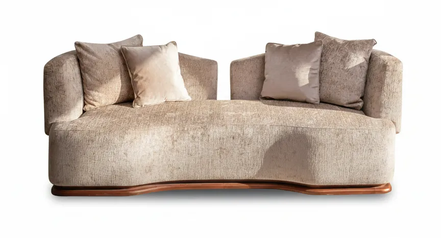 كنبة منجدة بتصميم أنيق يجمع بين الخطوط الناعمة والطابع العصري. تتميز براحة عالية وتوازن بصري جذاب، مما يجعلها قطعة مركزية مثالية لغرف المعيشة الحديثة.
