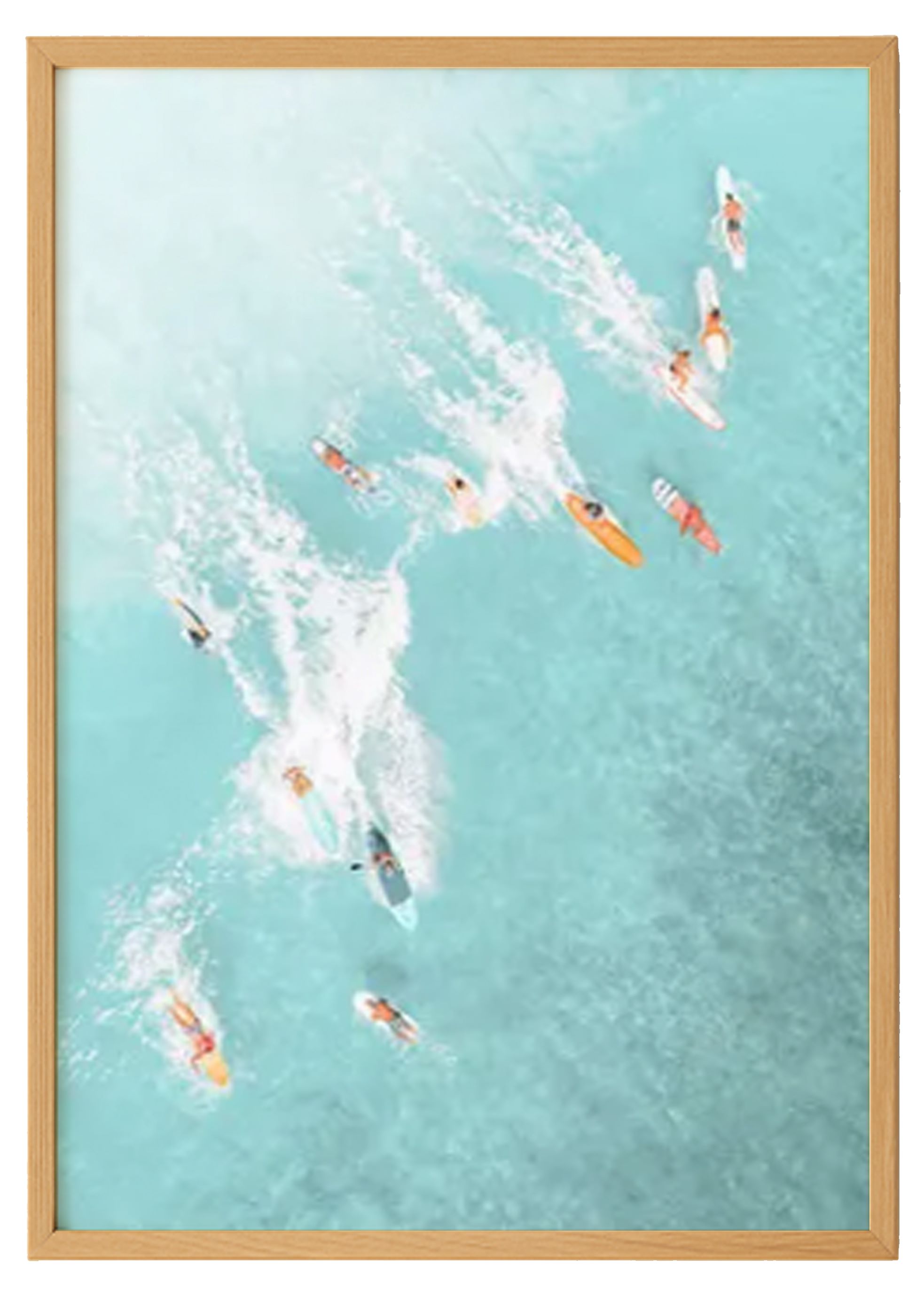 تظهر الصورة المرسومة لراكبي الأمواج في البحر طاقة وإيقاع المحيط من خلال خطوط انسيابية وألوان دافئة وحيوية. تضيف لمسة فنية تعكس الحركة والحرية، مما يجعلها مثالية للمساحات ذات الطابع البحري أو الشبابي. إنها لوحة تجمع بين الهدوء والحيوية، مما يكمل ديكور منزلك بأجواء ساحلية أنيقة.