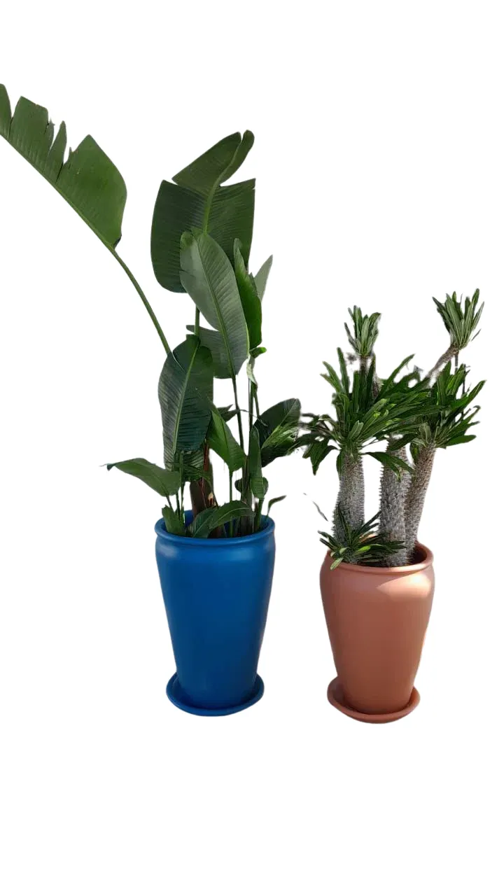 حوّل مساحتك الخارجية إلى واحة من الجمال مع طقم سترليتزيا ومدغشقر الثنائي. يجمع بين نبتة السترليتزيا الطويلة ونخيل مدغشقر في أواني فخارية أنيقة بلونين مميزين لإطلالة استوائية راقية.