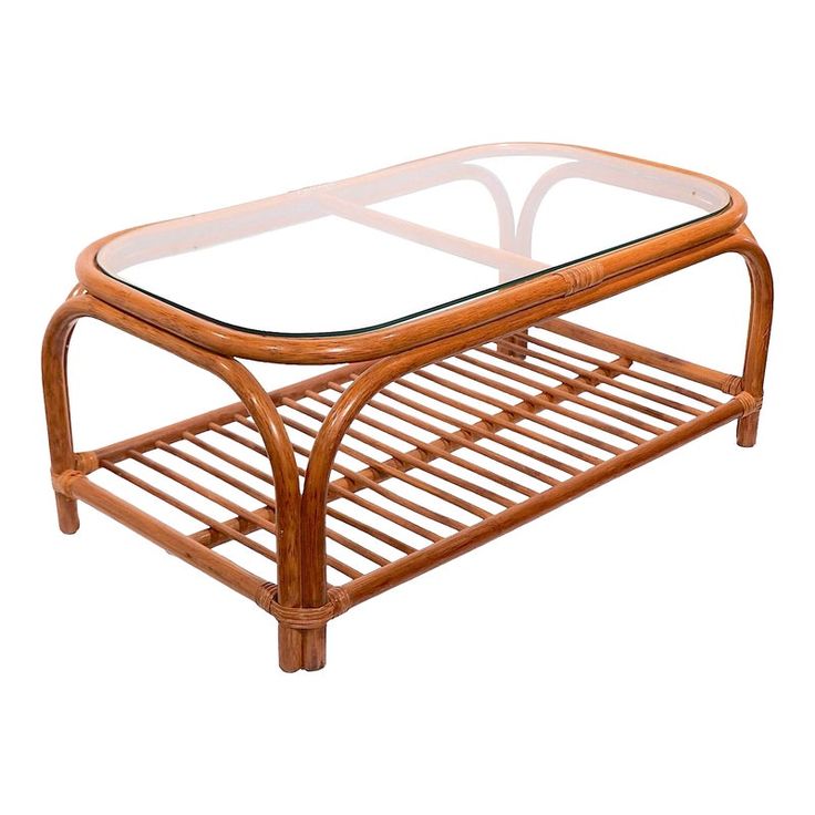 طاولة وسط من البامبو بهيكل طبيعي وسطح زجاجي