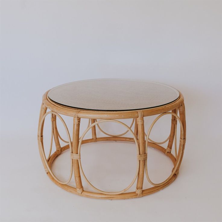 طاولة وسط من البامبو بهيكل طبيعي وسطح زجاجي