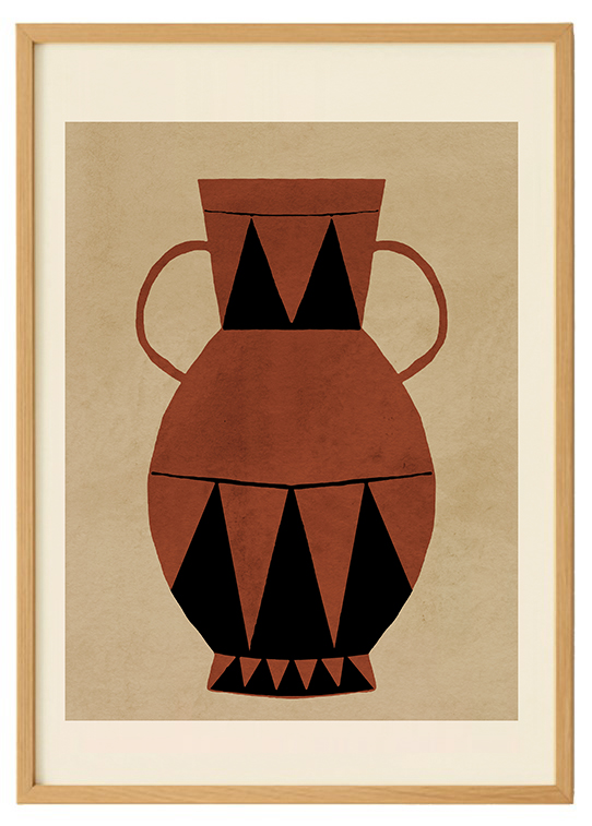 لوحة مؤطرة لتصميم مزهرية هندسية بلون التيراكوتا، تتميز بثلاثيات سوداء جريئة فوق درجات ترابية دافئة، تمزج بين الطابع العتيق والبساطة العصرية. تناسب ديكورات الجاباندي أو البوهيمية أو البسيطة. مطبوعة على ورق عالي الجودة، متوفرة بإطار خشبي طبيعي أو أبيض، وجاهزة للتعليق لتضفي أناقة دافئة على أي مساحة.