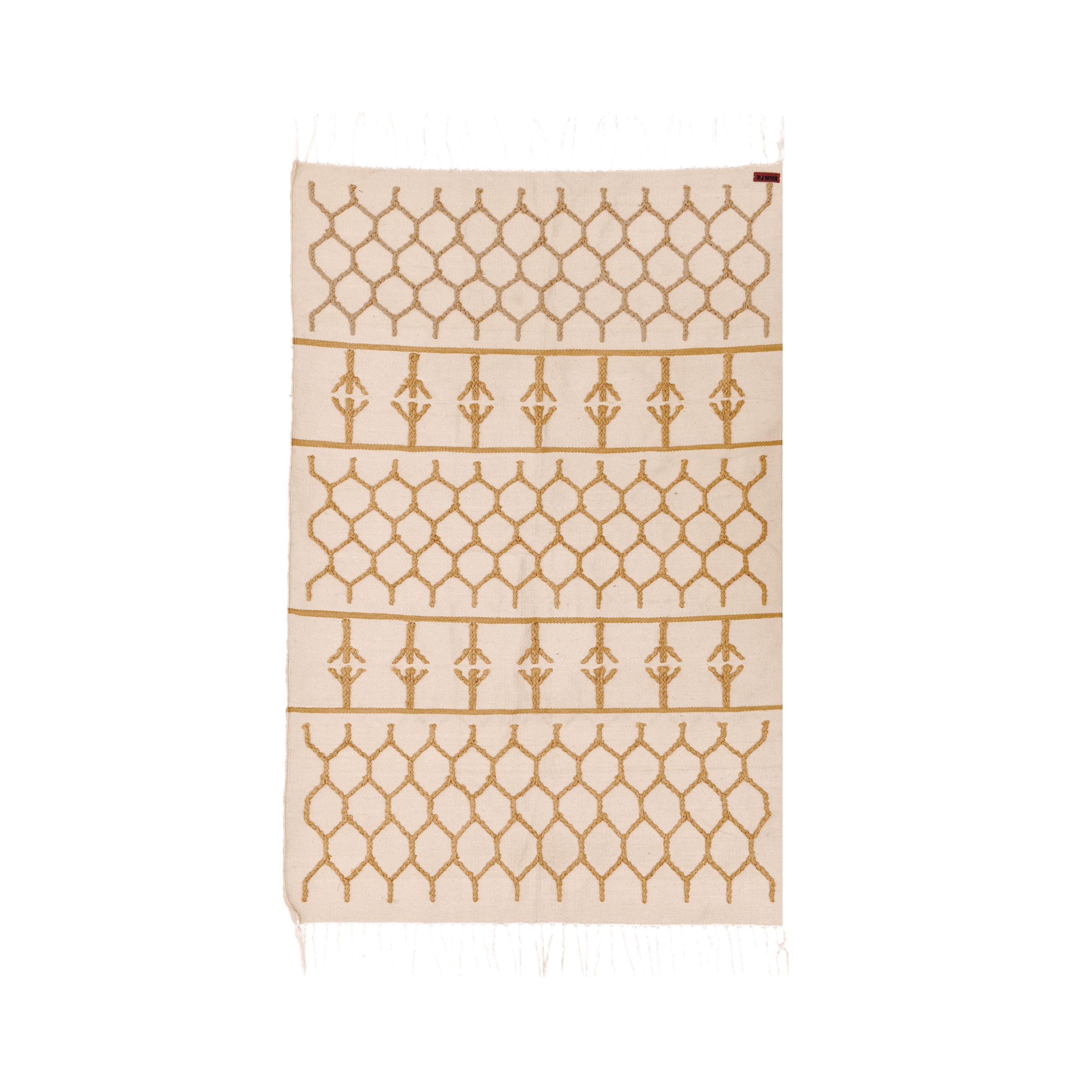 Celebrate the beauty of harmony and thoughtful design with this kilim rug, inspired by the intricate geometry of a beehive.