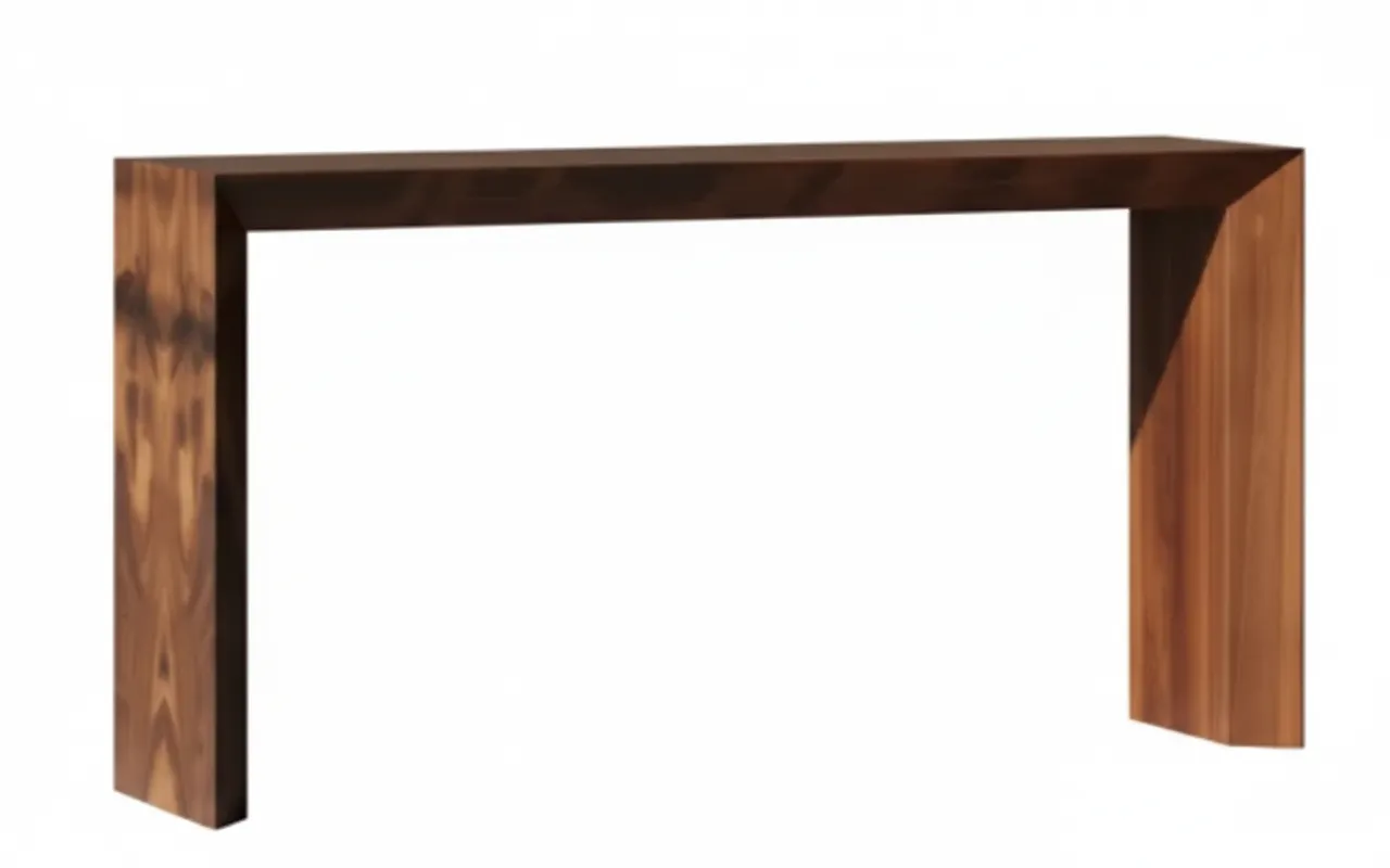 A sleek console table designed with clean lines and refined materials. Finished in beech veneer with walnut burl veneer accents, this piece brings understated elegance to entryways, living rooms, or behind sofas.