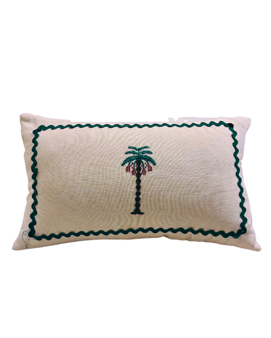 A refined expression of handcrafted design, the Biet Nakhla Rectangular Cushion adds warmth and character to any setting. Featuring an embroidered palm motif framed by a bold zigzag border, this cushion blends heritage inspiration with a cozy, elevated feel.