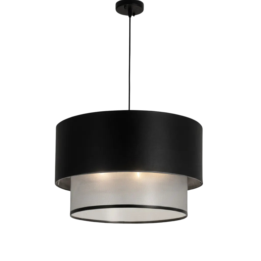 Designed to elevate modern interiors, this pendant light features a refined layered silhouette that balances bold texture with soft illumination. The contrast between leather and fabric creates a warm, elegant ambiance ideal for stylish living spaces.