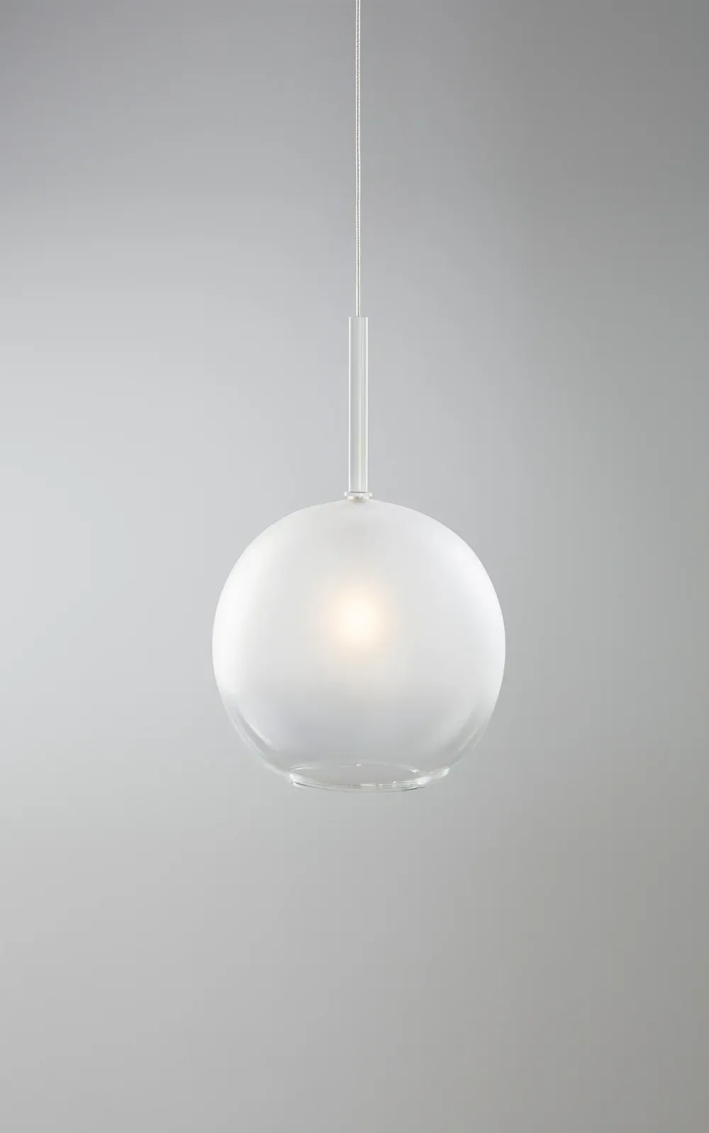 A ball-shaped pendant with a frosted tinted glass head and glossy burgundy steel rods, offering a minimalistic yet luxurious appeal that is both subtle and bold. Designed for indoor use, it comes with a replaceable 1.3W G4 bulb (2700K / 180 lm / CRI>80), non-dimmable.