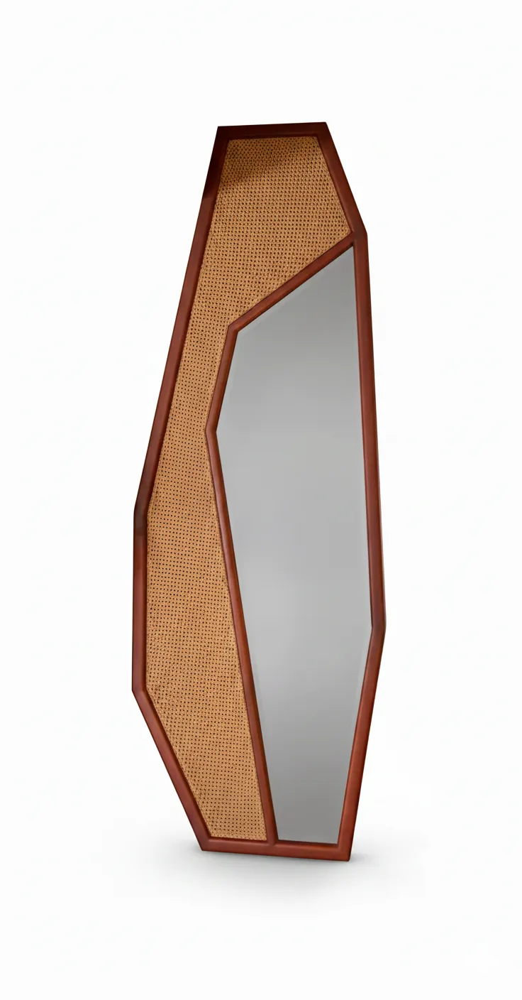 Add a touch of artistry to your space with Kye Geometric Solid Beech Wood Mirror. Its unique angular design, coupled with the natural cane, creates a contemporary look that effortlessly elevates your home décor. The solid beech wood frame ensures durability, while the high-quality glass mirror provides crystal-clear reflections. Ideal for bedrooms, hallways, or living spaces, this mirror is a versatile piece that blends functionality with striking design.