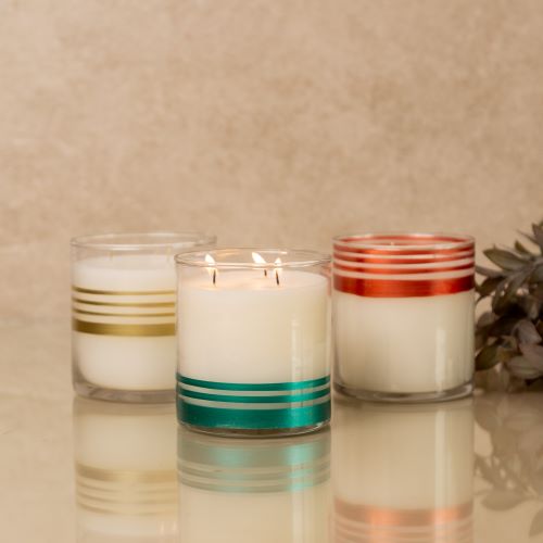 Caramelized Vanilla Scented Stripes Glass Candle Cup