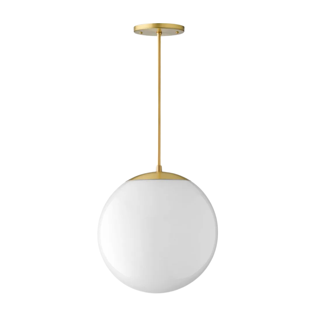 A ball-shaped ceiling lamp made of steel with an electrostatic finish, suspended by wire from a sturdy round plate. The glass lampshade is decorated with gold metal accents, adding elegance to the design. It includes one socket (bulb not included) and is ideal for bedrooms, living rooms, or dining areas.