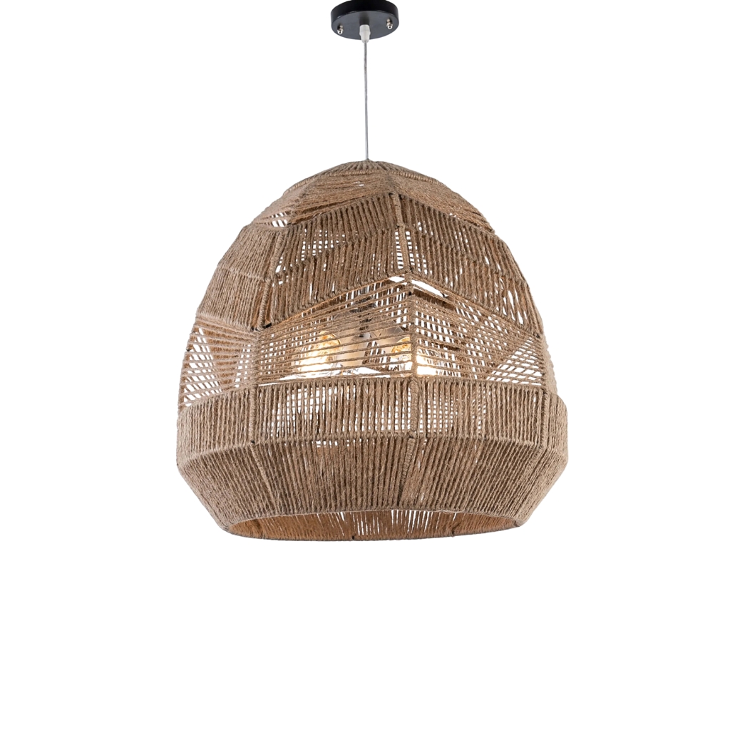 نجفة معلقة مصنوعة من الحبال علي هيكل فولاذي تضيف لمسة من الدفء والملمس إلى مساحتك. مصنوعة من خامات طبيعية، تنشر الضوء برقة لتخلق أجواء ناعمة ومرحبة. بتصميمها البسيط والمتعدد الاستخدامات، تنسجم مع أي غرفة وتتلاءم بسهولة مع مختلف أنماط الديكور. مزودة ب3 دوايا. تأتي بدون لمبات.