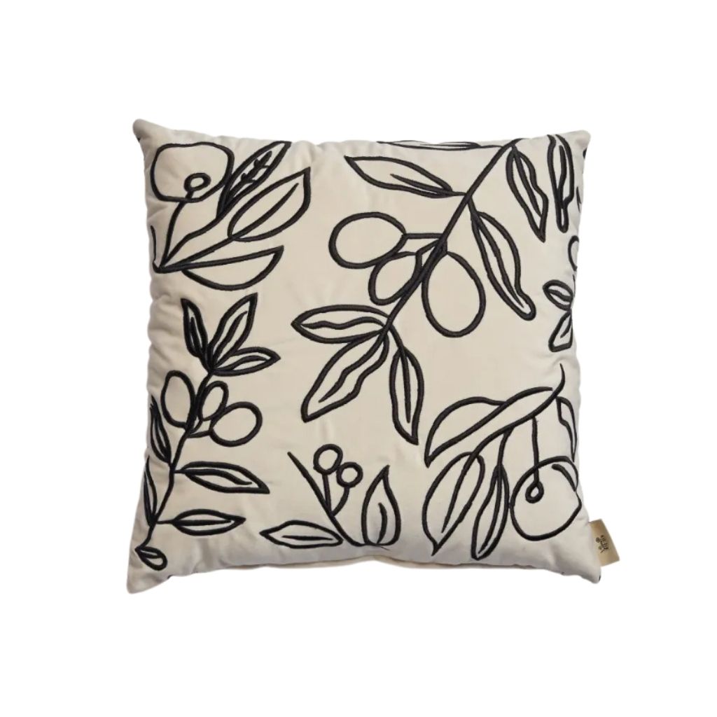 A luxurious cushion featuring cherry tree branch embroidery on soft velvet. It comes with a cover and filling that provide a soft yet supportive feel. To maintain its high quality and long lifespan, it is recommended to dry-clean it. Perfect for enhancing the beauty and elegance of sofas, chairs, or beds.