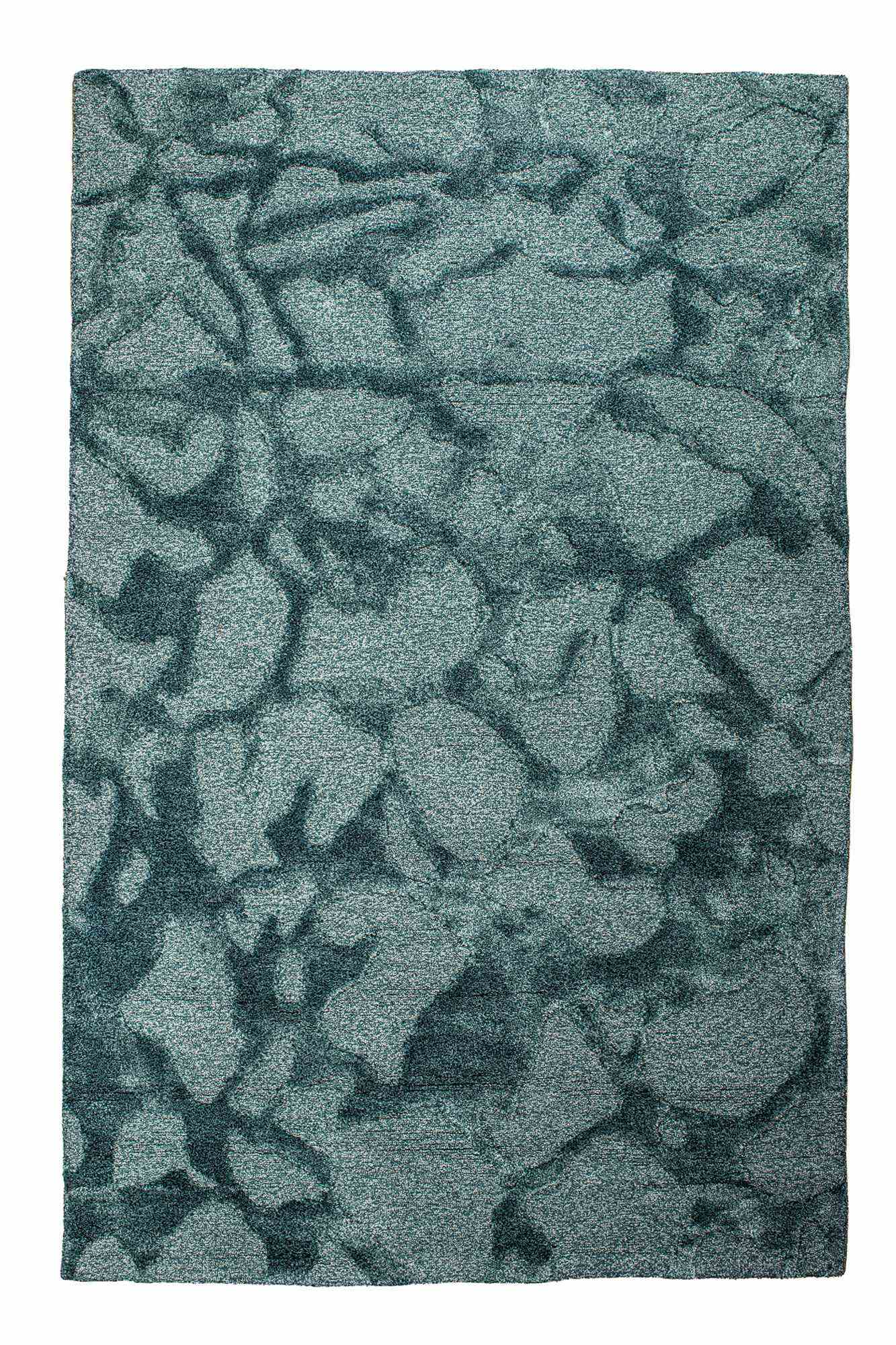 The Wuvin rug features an organic, fluid pattern inspired by natural textures and gentle movement. Its layered design and rich green tones create depth while maintaining a calm, contemporary feel.