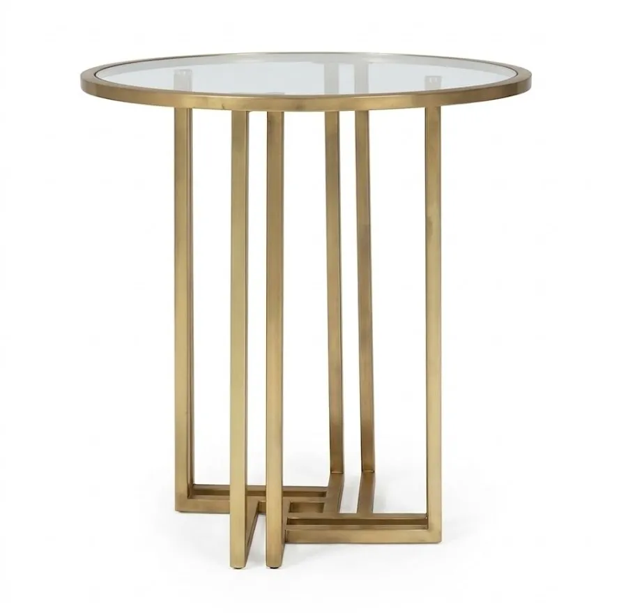 A side table designed to be a true statement piece for any living room, featuring a bold architectural base crafted from high-quality metal bars. Topped with a choice of luxurious glass or a reflective mirror, this table adds a touch of elegance and versatility to modern and classic interiors alike. Its geometric frame and premium materials create a sophisticated focal point that balances artistic design with everyday functionality.
