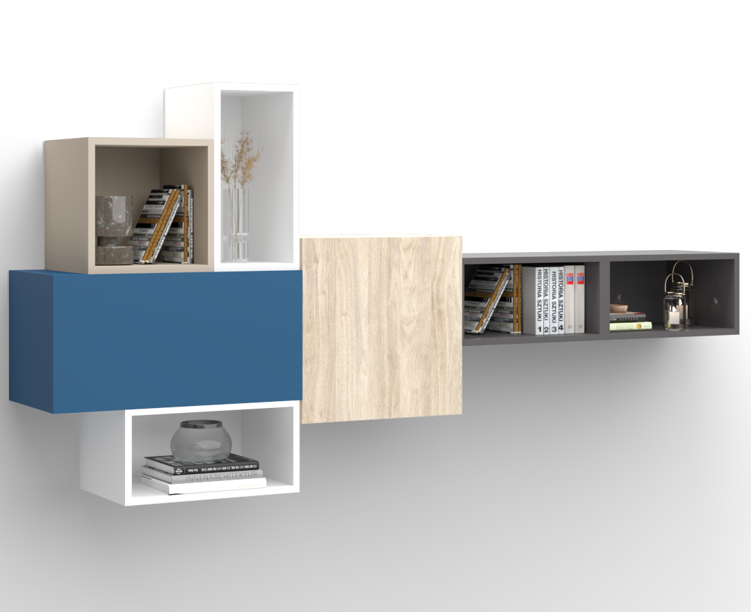 Cube Wall Unit 220 - With Mixed Open & Closed Storage Spaces