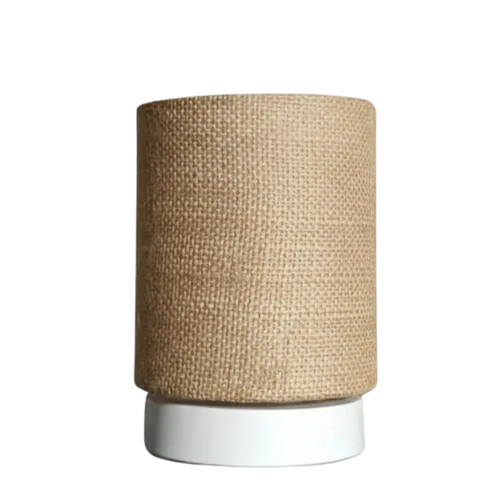 مصباح جانبي أنيق يجمع بين الوظيفة والديكور، بتصميم أسطواني وملمس منسوج يضيف دفئاً ولمسة عصرية للمساحات الداخلية.