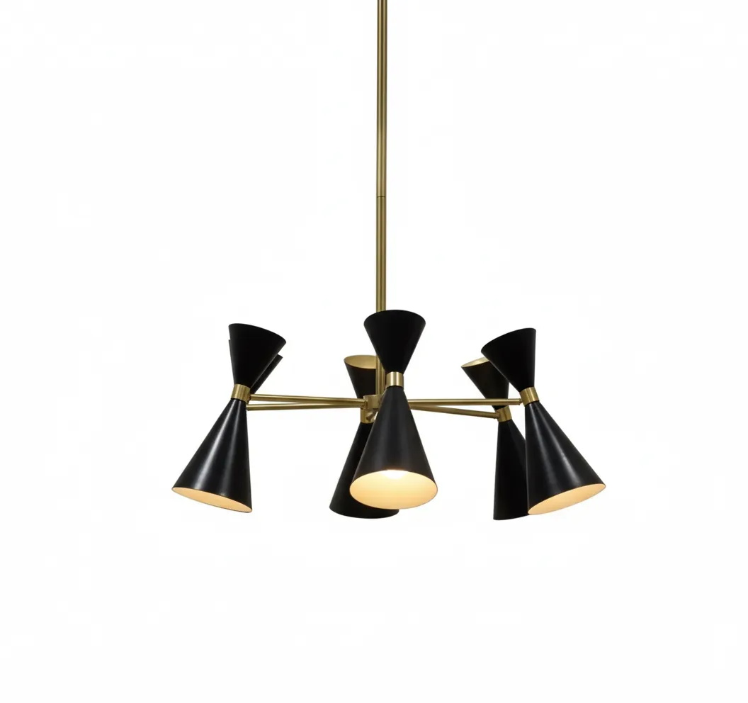 A chandelier featuring five elegant lampshades, designed to provide balanced illumination with a refined touch. Its versatile style makes it suitable for both classic and modern interiors, adding charm and sophistication to any space.