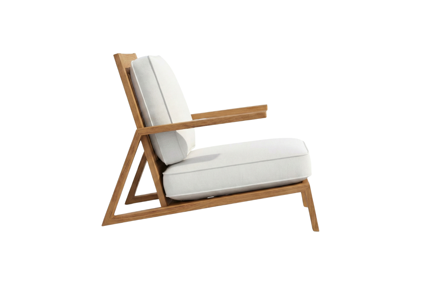 The E Lounge Chair is designed for effortless outdoor comfort with a relaxed, laid-back silhouette. Featuring a sturdy wooden frame and generously cushioned seat and backrest, this lounge armchair offers the perfect balance of support and softness for everyday outdoor living.