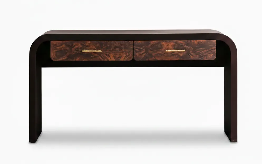 The Earth dresser brings modern elegance through soft curves and a refined mix of materials. Framed in dark-stained beech veneer and finished with burl walnut drawer fronts, this piece balances artistic expression with everyday functionality. Brushed gold handles add a subtle touch of luxury, making it a standout in bedrooms, hallways, or dressing areas.