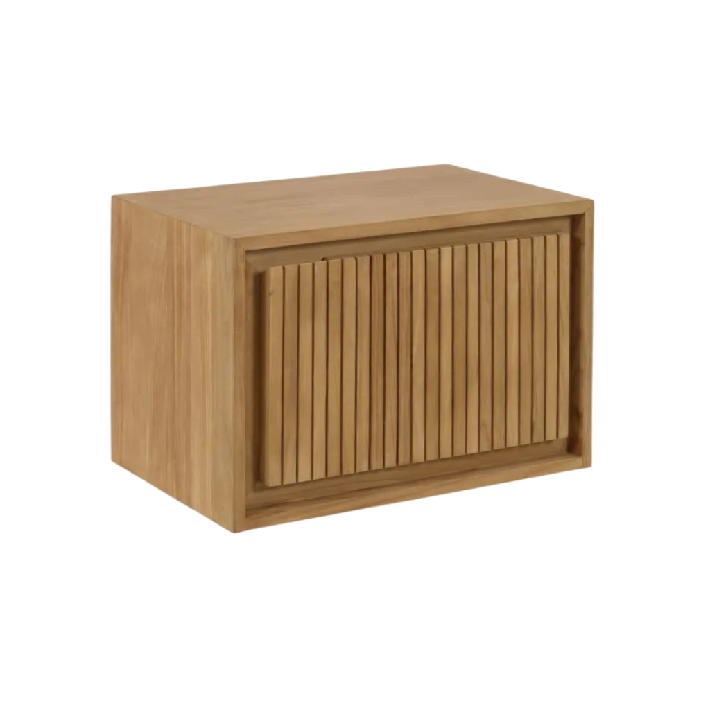 - Minimalist form with vertical slatted front detailing