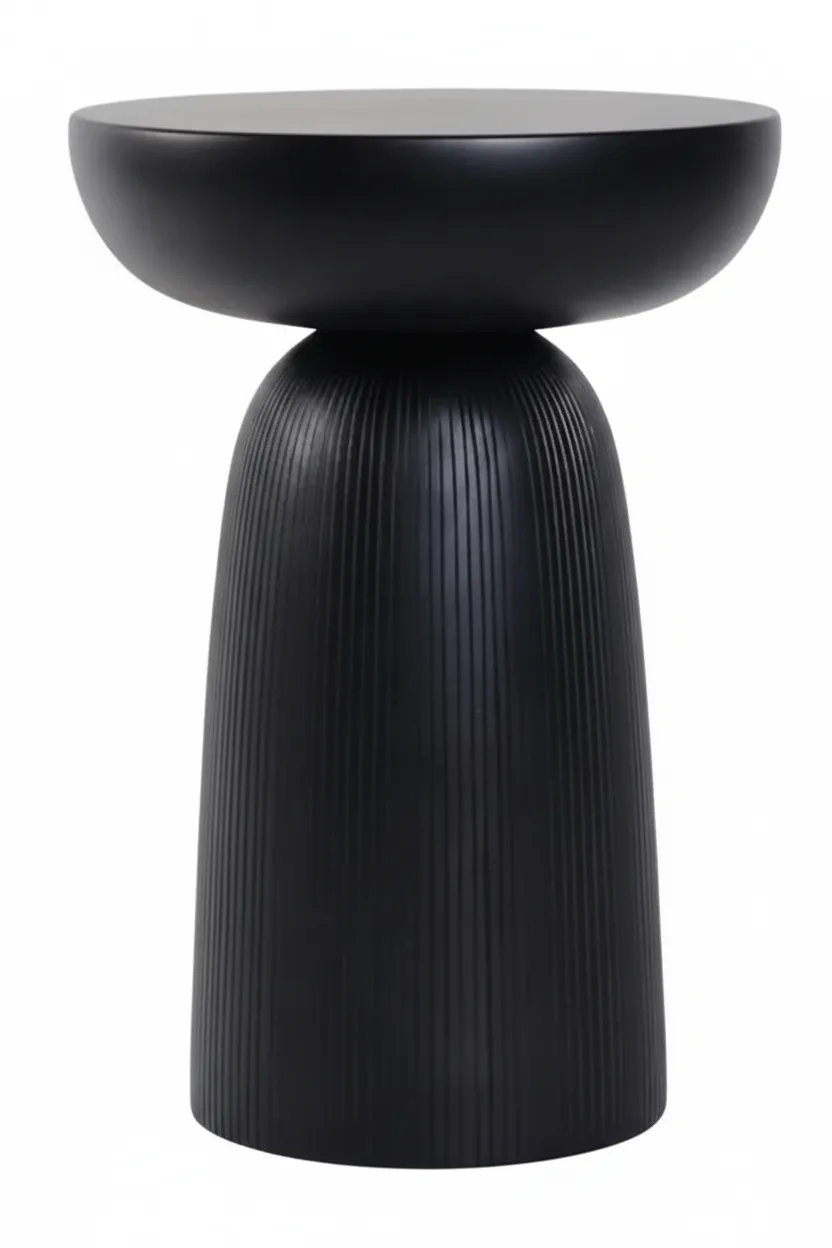 Flutes Side Table - Oak Veneer - Round Design - Black