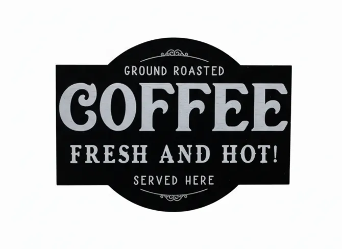 The “Fresh & Hot” coffee sign adds vintage charm to any coffee corner. With bold white text on a classic black background, it brings cozy café vibes to kitchens, cafés, or office spaces.
