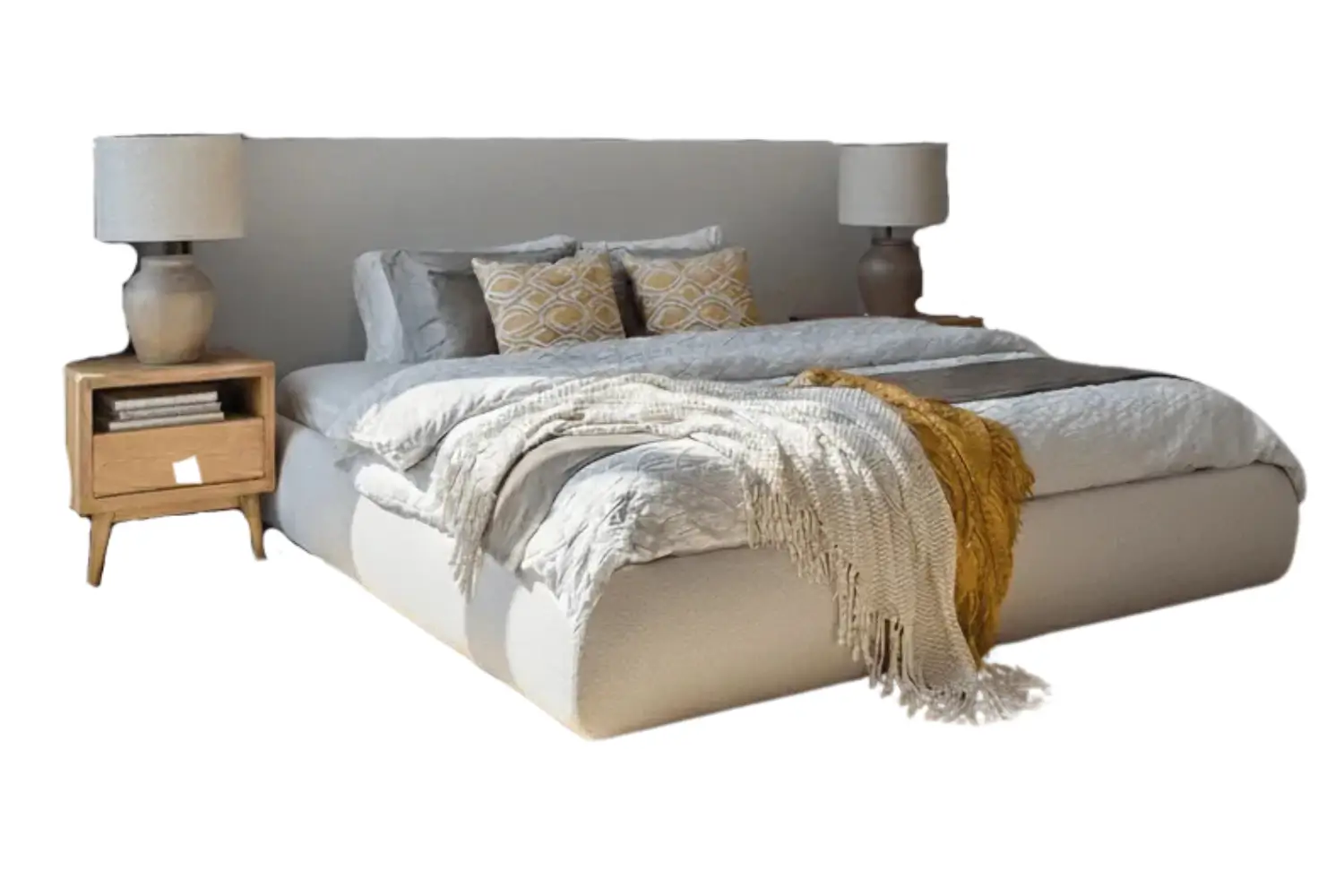A bed designed for premium comfort and modern elegance, fully upholstered in soft, high-quality fabric from headboard to base. Its padded silhouette adds warmth and a luxurious feel, making it the perfect centerpiece for contemporary bedrooms.