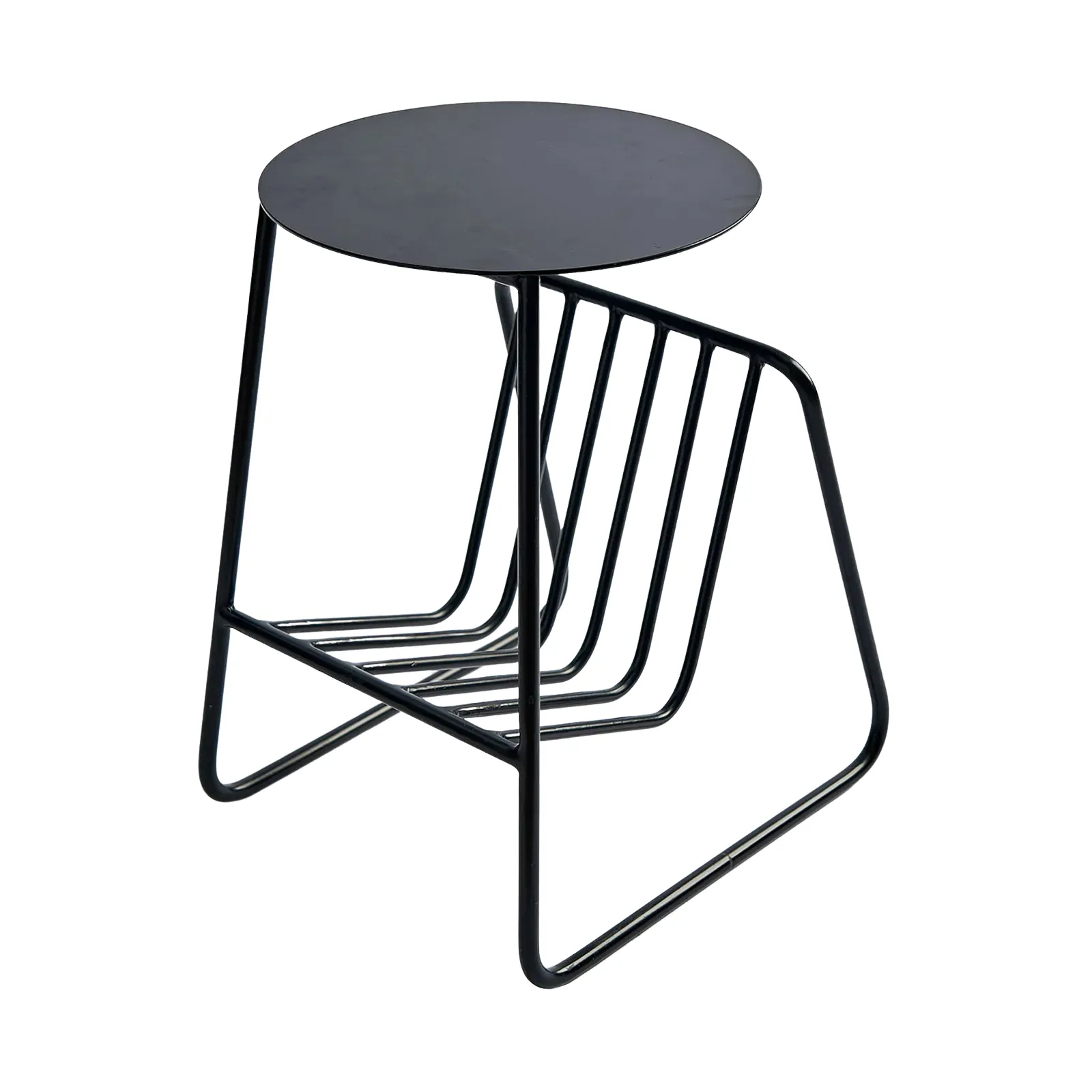 A sleek and durable side table made from 10mm solid metal rods with a matte black electrostatic paint finish, paired with a 3mm thick metal top. Featuring a lower shelf for extra storage, this all-metal design is ideal for modern living spaces, offices, or loft-style interiors.