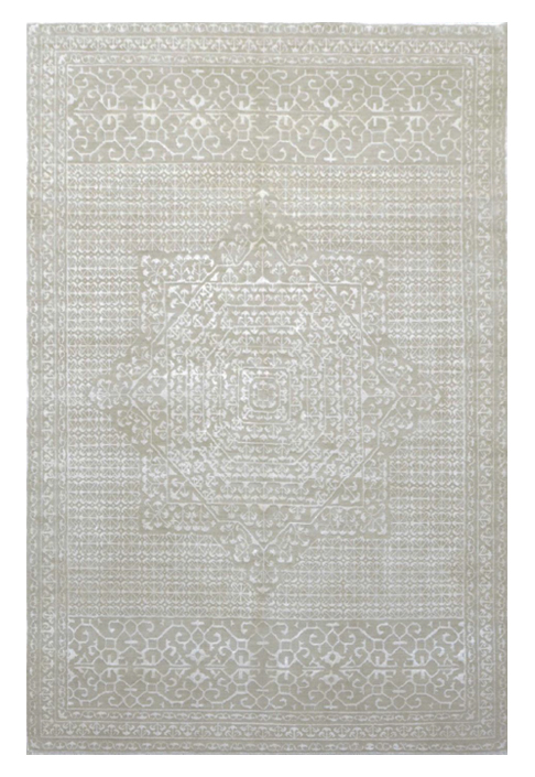 A hand-knotted rug crafted from 100% natural wool and art silk, featuring an elegant design in grey tones. The blend of materials offers both durability and a gentle sheen, highlighting the refined contrast of its palette. Perfect for adding warmth and sophistication to living rooms, bedrooms, or statement corners.