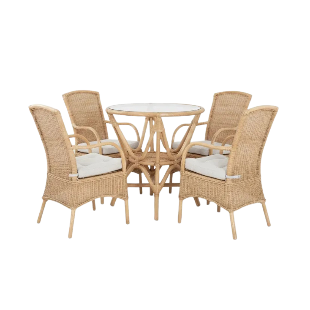 Bring timeless charm to your outdoor space with the Heritage outdoor set — a beautifully balanced combination of classic rattan craftsmanship and everyday comfort. Designed for relaxed conversations and cozy moments, this set blends natural textures with elegant proportions.