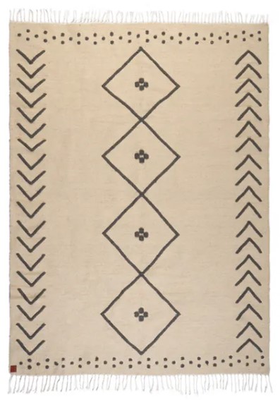 Blue Tassel Handwoven Natural Wool Rug – 100% Wool With Minimalist Design