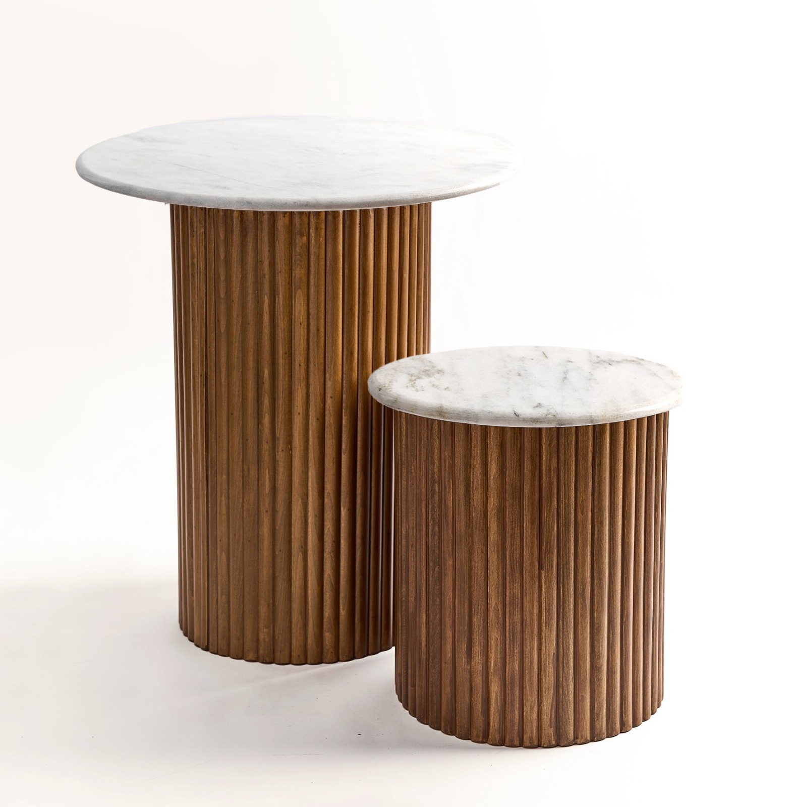 Lanes Marble Top - Set of 2 Tables - Beech Wood - Round