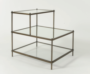 A box-shaped side table featuring two levels of shelving—perfect for storing everyday essentials while also serving as a display area for plants, lighting, and decorative accents. Made with a durable metal frame and glass surfaces, it combines practicality with refined elegance, making it a stylish addition to any living space.